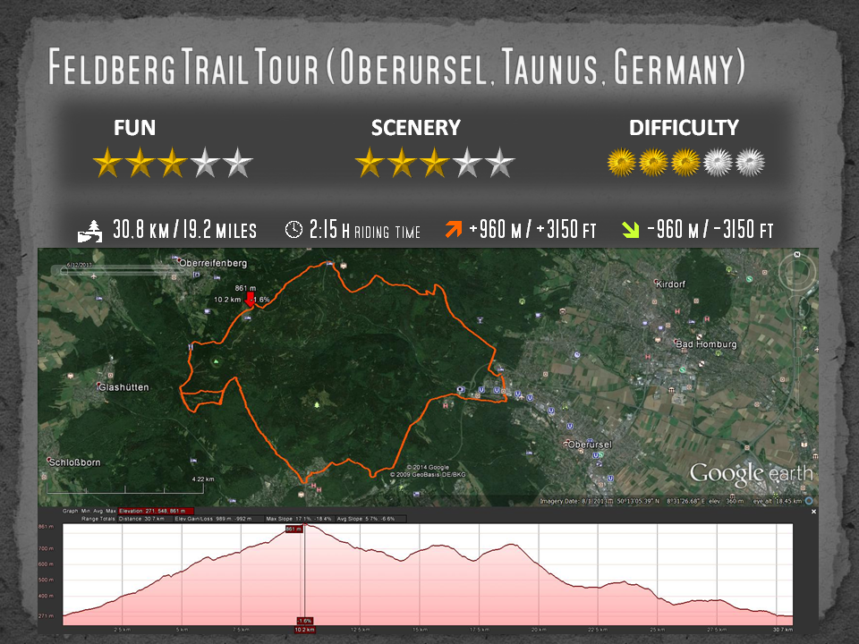 Most likely, the trails in the Taunus will struggle to make it into the top 100 list of the world’s best singletrack MTB-trails.  However, there are great trail riding opportunities that can be discovered and even epic tours are possible, if you just know the area good enough.  The best and longest routes are up and down the highest elevations in the Taunus, the Grosse Feldberg (872m) and the Altkönig (799m).