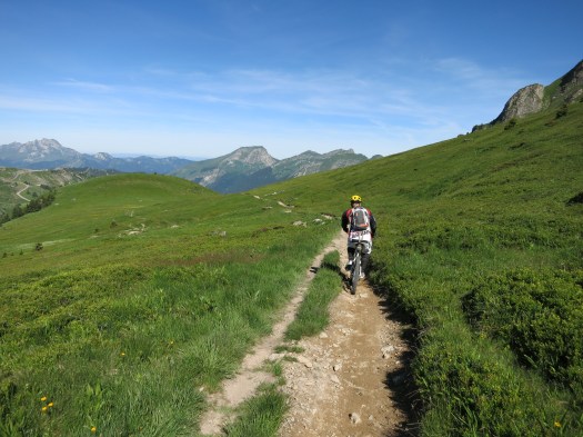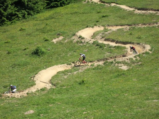 On the Latemar Tour you would use the new Carezza cable car to avoid most of the gnarly climb up the Catinaccio (Rosegarden) Range to the Carezza Pass. However, going down the freshly built Carezza Flow Trail is so much fun that you want to use the Carezza lift multiple times.